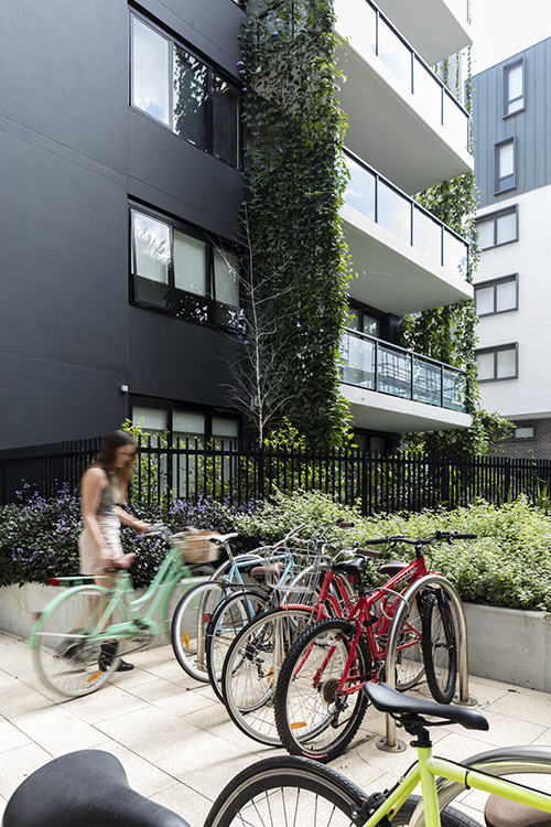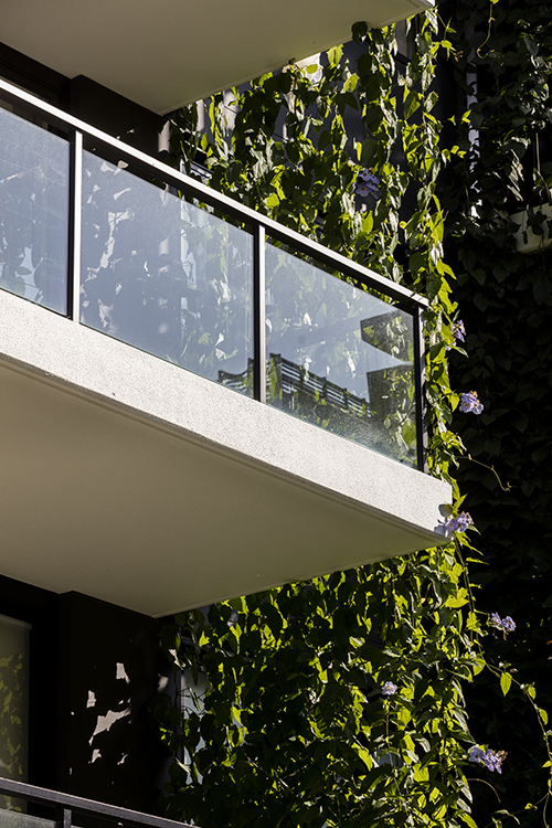 Eve Apartments, designed by DKO architecture, embodies the above. The green facades rise out of the courtyard climbing the 4 and 5 storey apartment buildings. The cable systems supplied and installed by Tensile provide a visual barrier between apartments. They use the Jakob Green Solutions range of fittings on 4mm stainless steel cables and are grouped together on the edges of the balconies throughout the courtyard providing privacy and a gentle outlook.