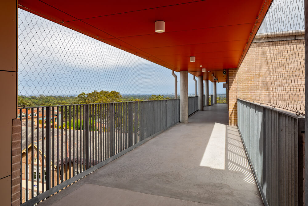 Another educational project that emphasised connectivity and sustainability was the Chatswood Public School redevelopment. Our brief was to install Webnet barriers on walkways, balconies, and other elevated spaces. In this case we were able to save the client a lot of money by joining together Webnet mesh panels of different aperture sizes into one continuous sheet, in effect reducing the volume of material required.