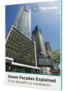 Green walls and fall protection barriers are generally seen as two different structures in terms of purpose and appearance. Barriers are largely about safety, while green walls and facades are usually installed for aesthetics and other benefits such improved air quality and shading.