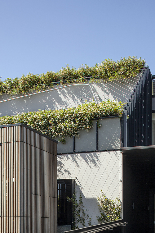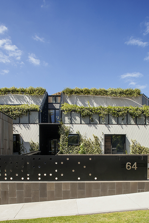 As the building’s appearance changes over time from the plant growth, so too will the apartments be provided with the added benefits of sun shading and cooling, in addition to the beautiful perfume during the flowering season – a unique facade that reduces its bulk and presence to the street-scape.