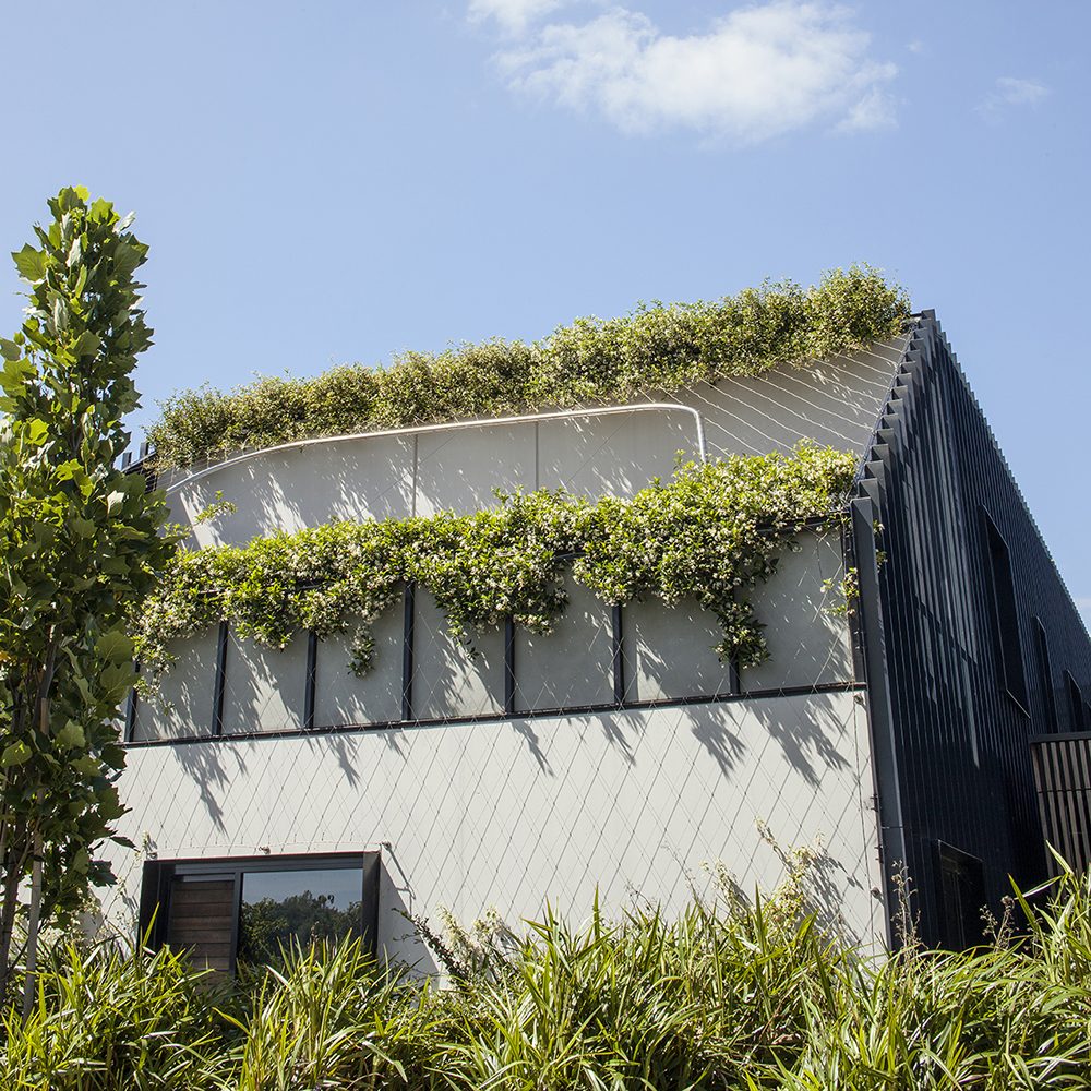 The 3 storey building is wrapped in a 1.5mm wire Webnet mesh screen that acts as a trellis for the Chinese Star Jasmine that will cover the building over time. The plants are located in various locations at the base and from some of the upper-level balconies. The lightweight mesh is made from grade 316 stainless steel ensuring a long and maintenance free life.
