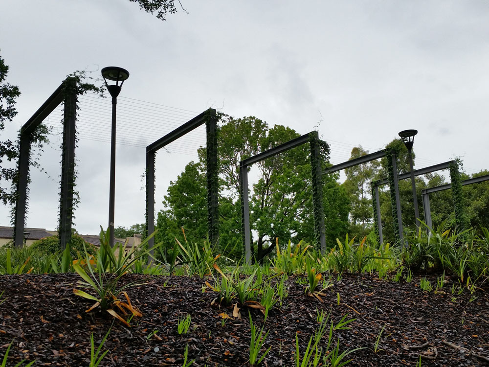 Simplicity and integration is the key with any cable trellis, the goal is to support the planting and not to dominate it. This has certainly been achieved at Foley Rest Park and Tensile looks forward to watching the arbor mature in the coming seasons.