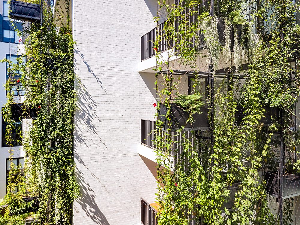 The beauty of hanging gardens of this kind is that they increase privacy and shade for residents – something often overlooked in modern apartment builds. They also do without impeding the great views.