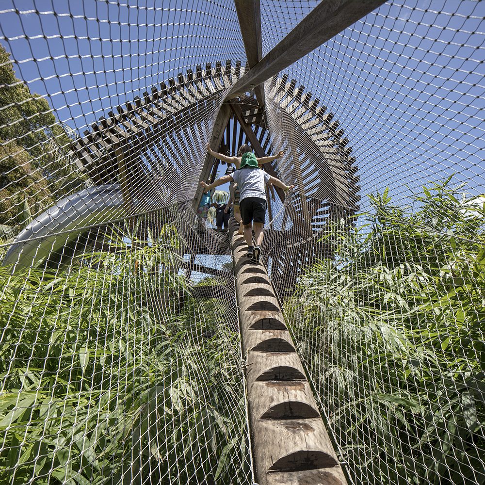 Tensile’s webnet mesh is ideal for projects of this kind. The mesh has a malleable, almost fabric-like characteristic that enables it to be draped over or wrapped around structures of just about any shape. This makes it great for children’s playgrounds which often involve quirky shapes and structures that need to be safe enough for the kids to freely enjoy.