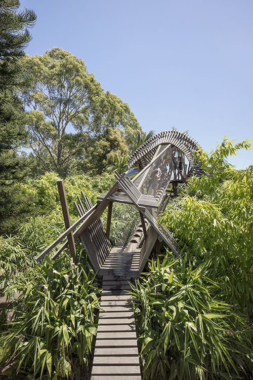 The Tensile 40mm aperture webnet mesh which wraps around the climbable eel complies with Australian safety standards while simultaneously being light and airy enough to not interfere in any way with the structure’s beautiful and unique design.