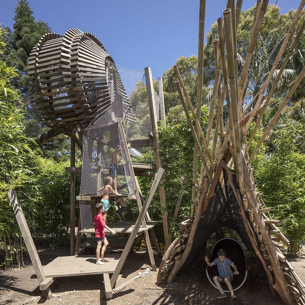 The garden is designed to provide outdoor learning experiences for children aged 2-12 of all physical abilities and cultural backgrounds. It allows children to connect with nature while learning about the environment, and to lose themselves in a magical world of exploration and play. The garden includes bamboo forests, a wetland area, tunnels, a treehouse, climbing structures, and an area of endangered Eastern Suburbs Banksia scrub.
