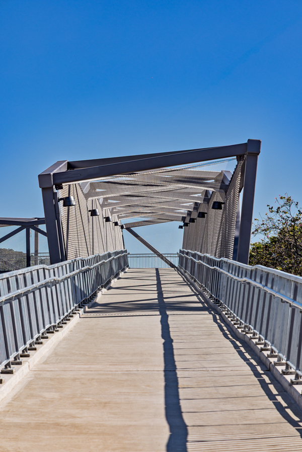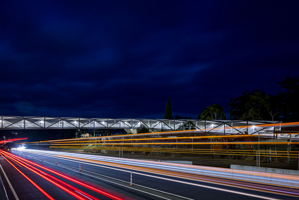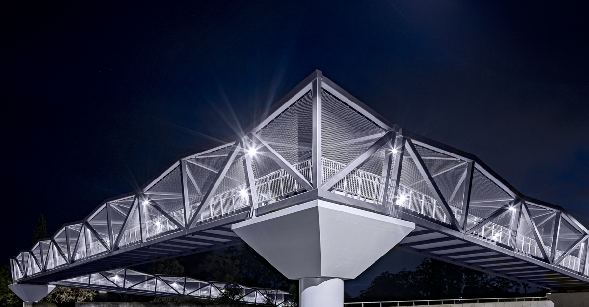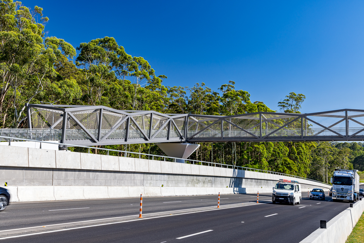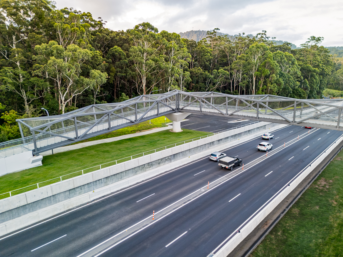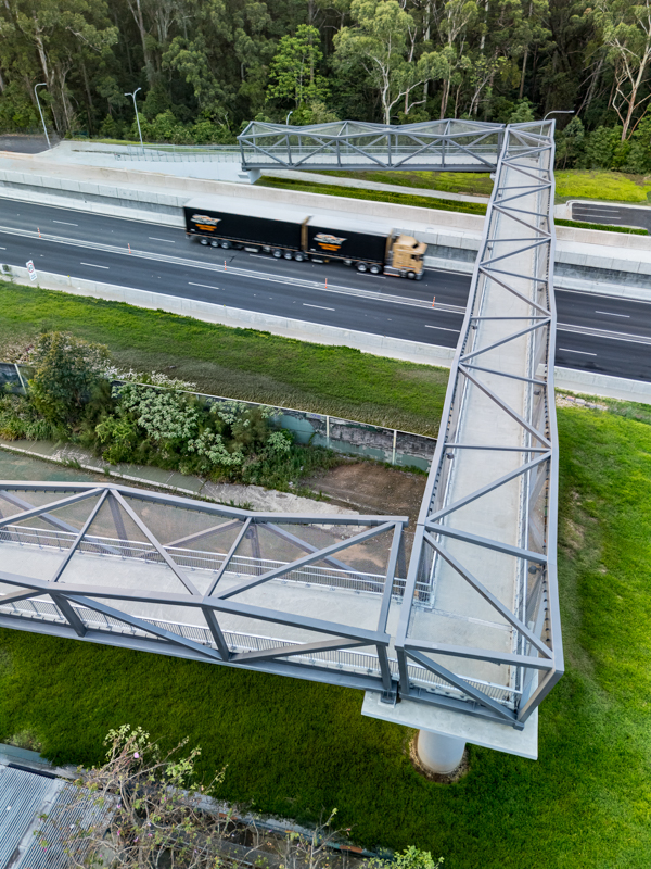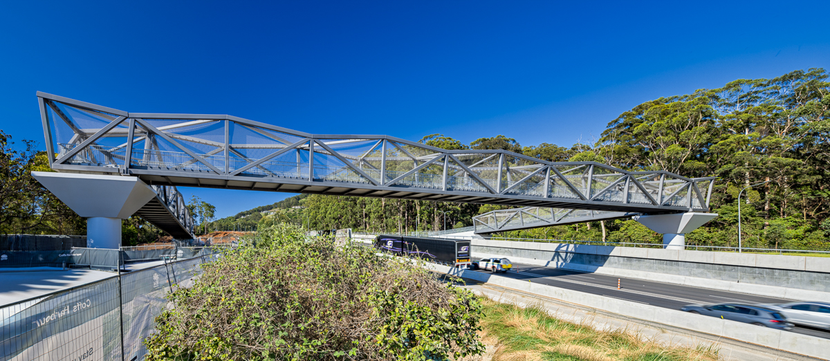 The Luke Bowen Pedestrian Bridge in Coffs Harbour creates an important new pedestrian connection across a major transport corridor. Delivered for Coffs Harbour City Council, the bridge was constructed by Ferrovial Gamuda JV with engineering by Arcadis and Sener Australia. The structure was designed to remain light and open while maintaining clear views of the surrounding landscape.
