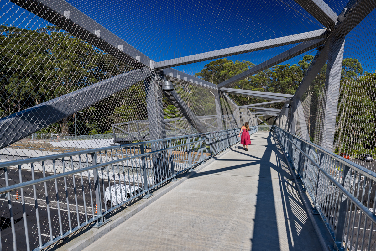 This approach reduced installation time at height, improved site safety and created efficiencies within the overall construction program. Early integration also ensured the Webnet formed part of the bridge structure rather than appearing as an element added later.