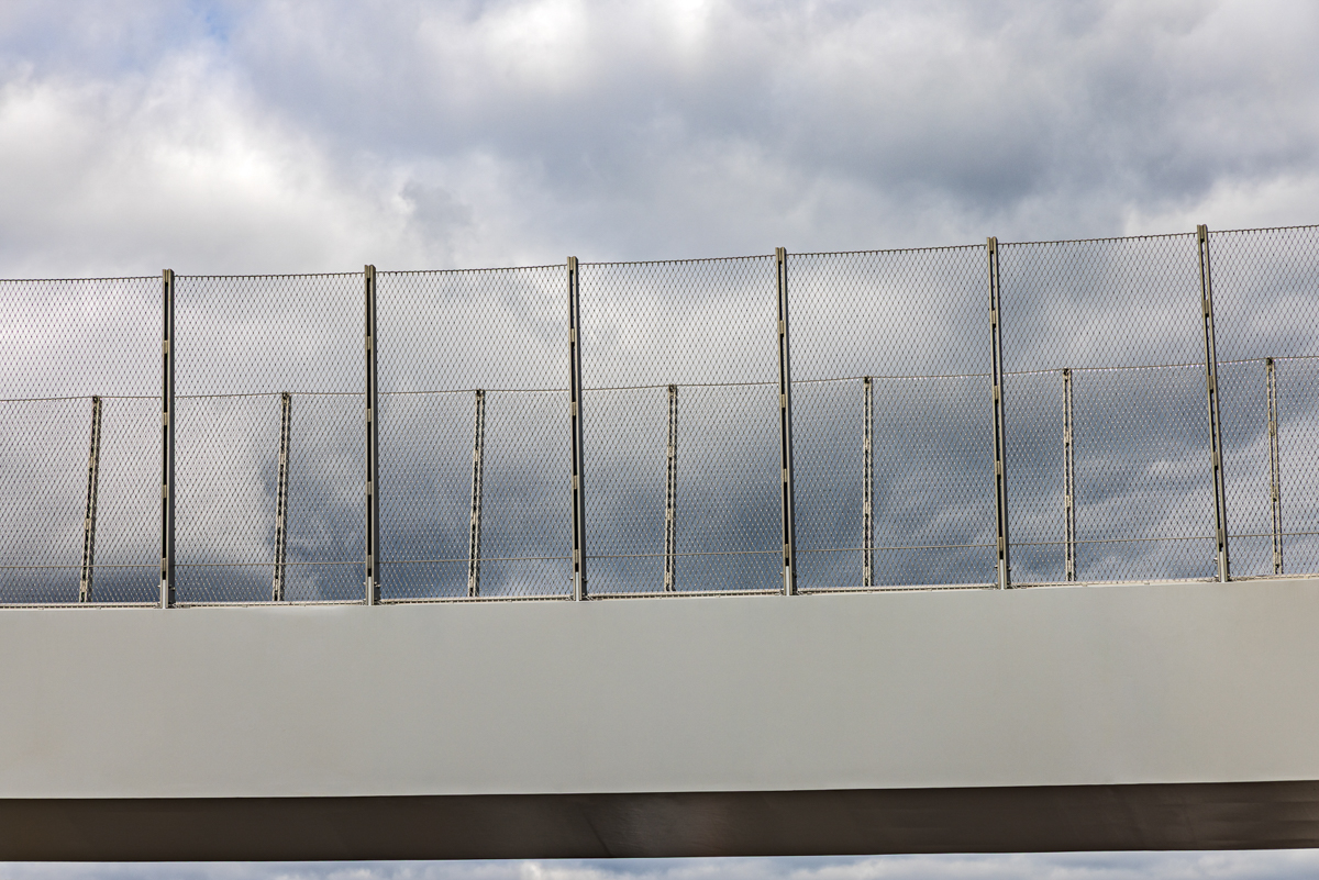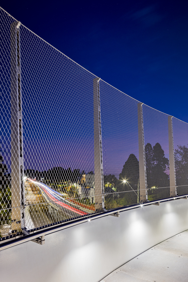 Design Inc described the transparency of the mesh screens as “representing the ephemeral nature of cloud formations while minimising visual impact, and allowing views to and from the bridge.”