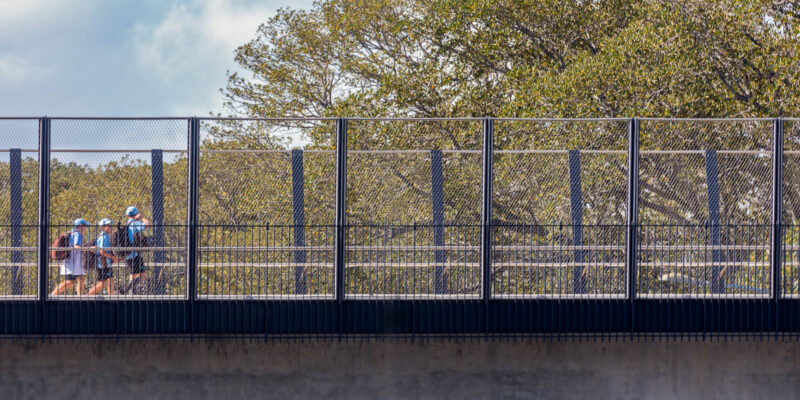 Tensile was engaged to design, supply and install Webnet mesh barriers for the new high-rise Inner Sydney High School in Surry Hills. Designed by architects FJMT Studios and constructed