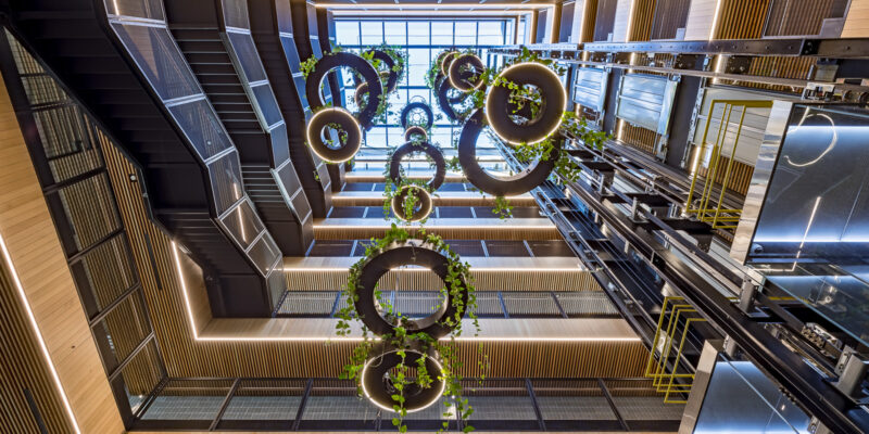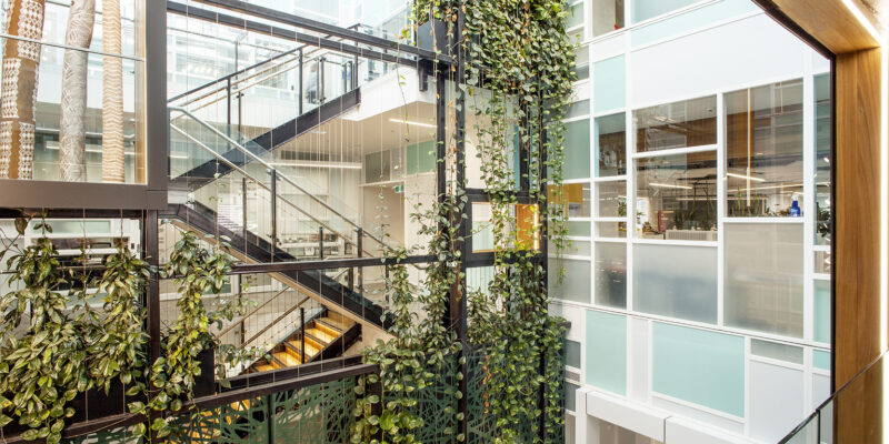 The Workshop project involved overcoming significant challenges to bring a hanging garden to life inside a multi-storey commercial building in inner Sydney. Workshop is a 19,000sqm steel and glass