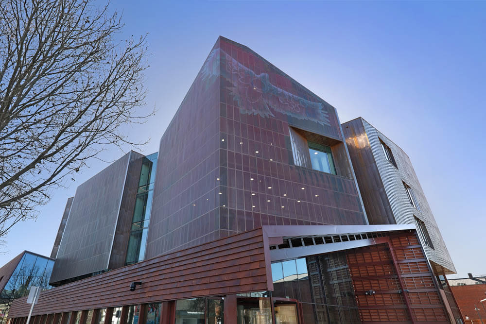 The new Bendigo Law Courts building also has a stunning external metal facade. It features a copper artwork by an indigenous artist that depicts a soaring wedge-tail eagle. The copper panels used for the artwork are supported by stainless steel 8mm wire-rope cables.