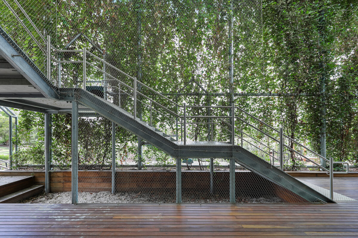 As part of the design, we delivered the climbing plant trellis for the outdoor space, a sports ball screen, and safety barriers for the staircases. These installations were constructed from Jakob Webnet stainless steel mesh – a highly robust and flexible material with a light, translucent appearance.